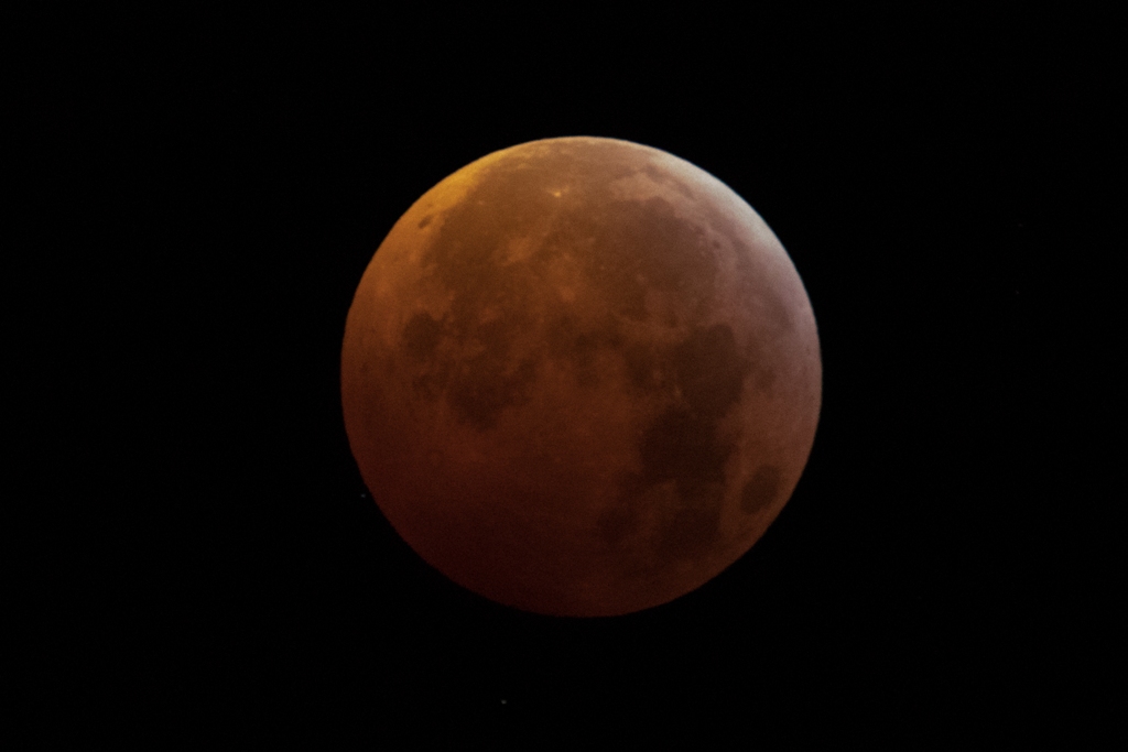 This is the total lunar eclipse that took place whilst we were there. There was about 90 minutes of totality, but the moon was in and out of cloud the whole time so photo opportunities were somewhat fleeting in nature. The white patch on the upper-right edge of the moon is sunlight that is shining through the earth's atmosphere. What a fantastic sight that must have made had anyone been on the moon to see it !