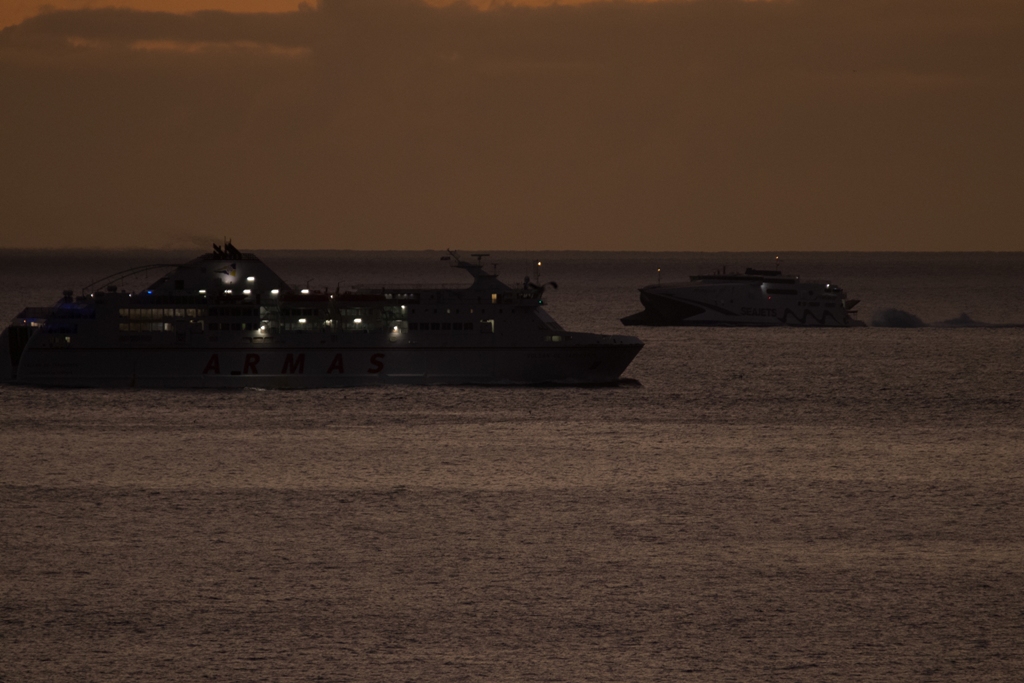 Pushing at the boundaries of amateur photography here - these two ferries are more than half a mile offshore, and it was every bit as gloomy as it looks here.