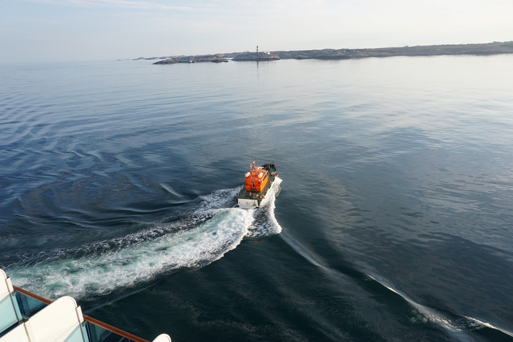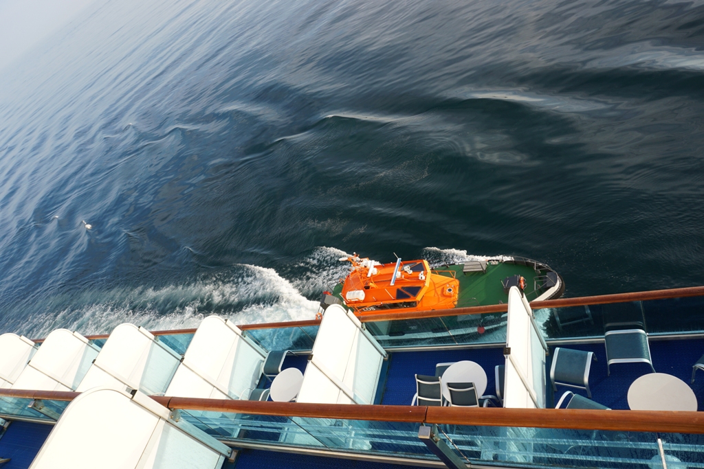 Beautiful morning colours abound as the Pilot Boat begins to draw alongside....