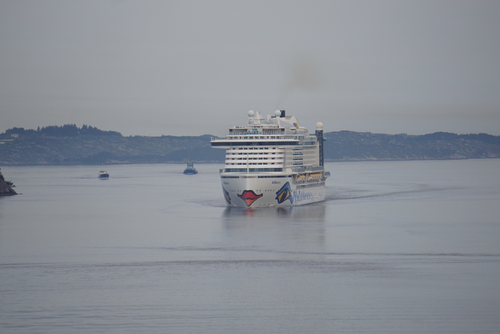 'Aida Perla' - all 125,000 tonnes of her - follows us towards Bergen.