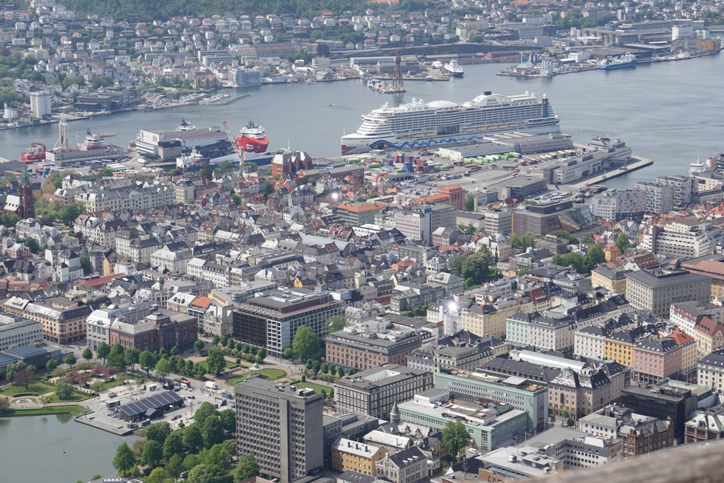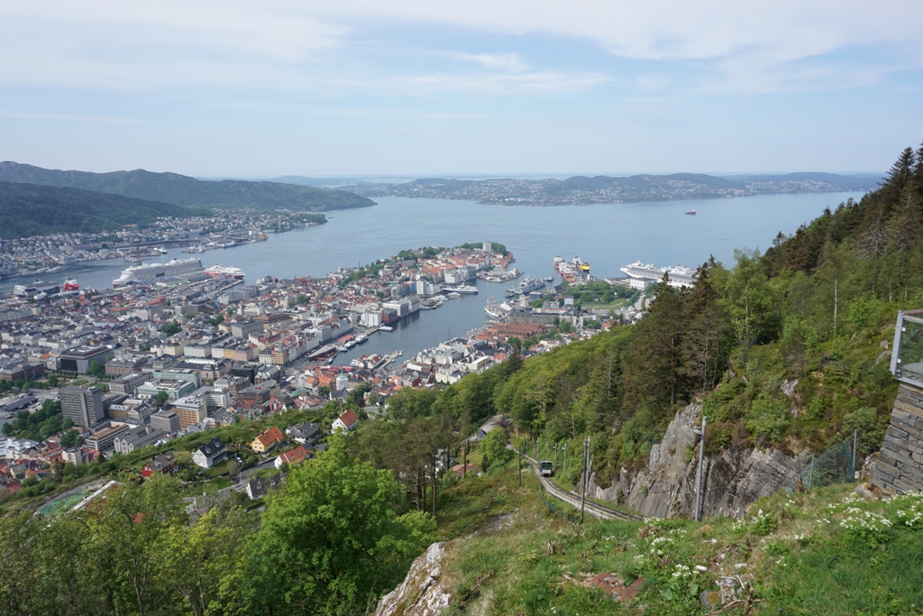 The view from Bergen's funicular railway. It's modern, it's quick, but we had to queue for over 90 minutes before boarding.