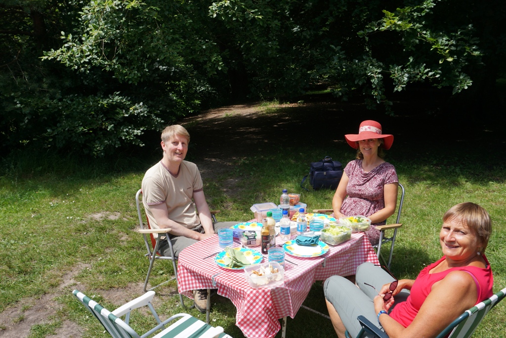 Immediately after returning home from France, a fine picnic at Shear Water with old friends Heidi & Simon.