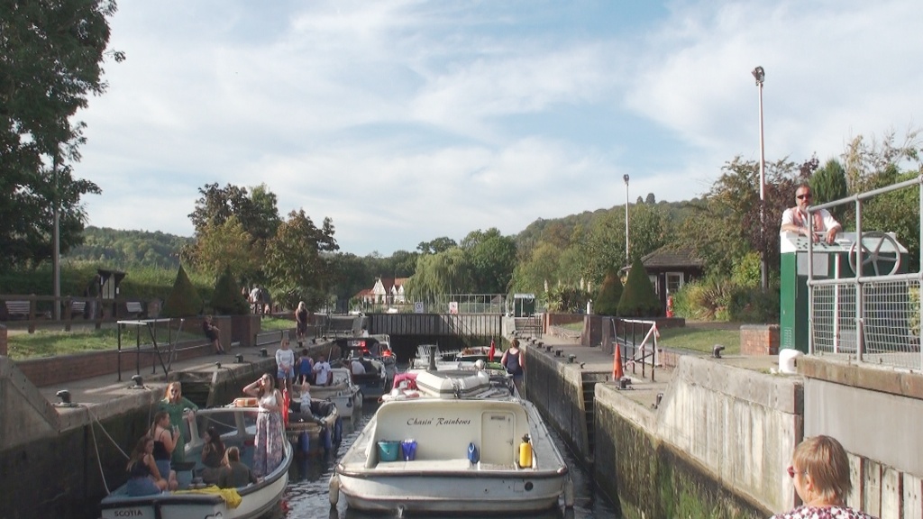 Possibly the most boats we've ever shared a lock with - eight of them, at Hambledon. Everyone and his dog seemed to be on the river on a weekend of perfect weather.